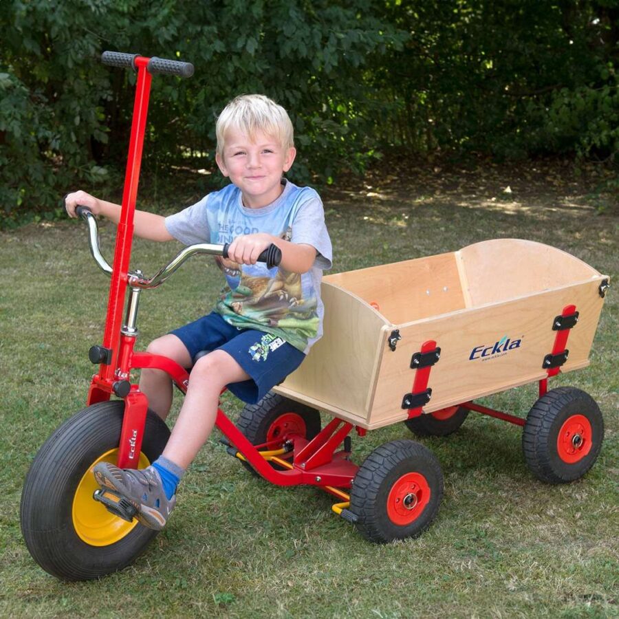 Saddle attachment device for the tricycle for retrofitting. Suitable for attaching an ECKLA handcart. Except for the “FUN” version with rear axle steering!